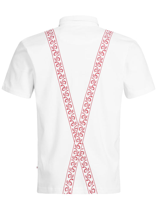 Herren Polo Kreuzstich Hosenträger Weiß