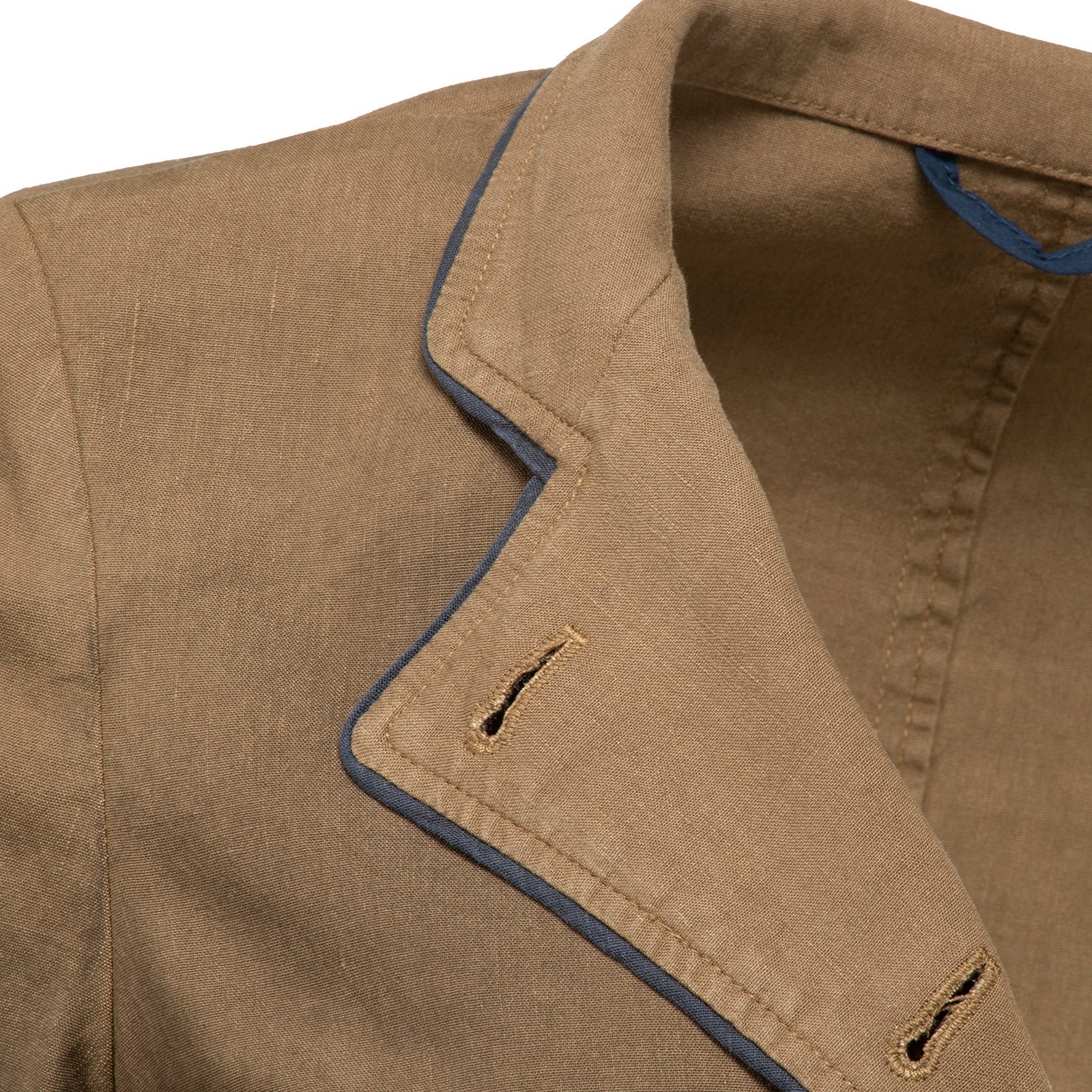 Betty ist ein Blazer von bestechender Schönheit: Die typischen Trachtenelemente wie der im Halbmond genähte kleine Stehkragen oder die Kontrastpaspel sind modern interpretiert, so dass Betty nicht nur in den Bergen, sondern auch in der Stadt funktioniert. Die Stoffmischung ist ganz besonders - eine Leinen-Tencel Mischung, die einen drapierenden Griff hat und deren Trageeigenschaften beeindrucken. Tencel gleich die unerwünschten Knittereffekte des Leinens aus und verstärkt den kühlenden Effekt. Ohne jede Beimischung von Kunstfaser hat der Stoff einen elastischen Effekt, so dass sich Betty so komfortabel trägt wie ein Strickjäckchen. Betty wird im Stück gefärbt und bekommt durch das Färben eine leicht angeraute Oberfläche, die diesen besonderen Griff möglich macht. Die Schneiderkunst unserer Handwerker manifestiert sich in der Paspel, die "ohne Seele" genährt ist. Das heißt, dass kein Hilfsband verwendet wird, das die Nähmaschine leitet - dass die Paspel so schön und glatt genäht ist, ist einzig der Kunst des Handwerkers geschuldet.